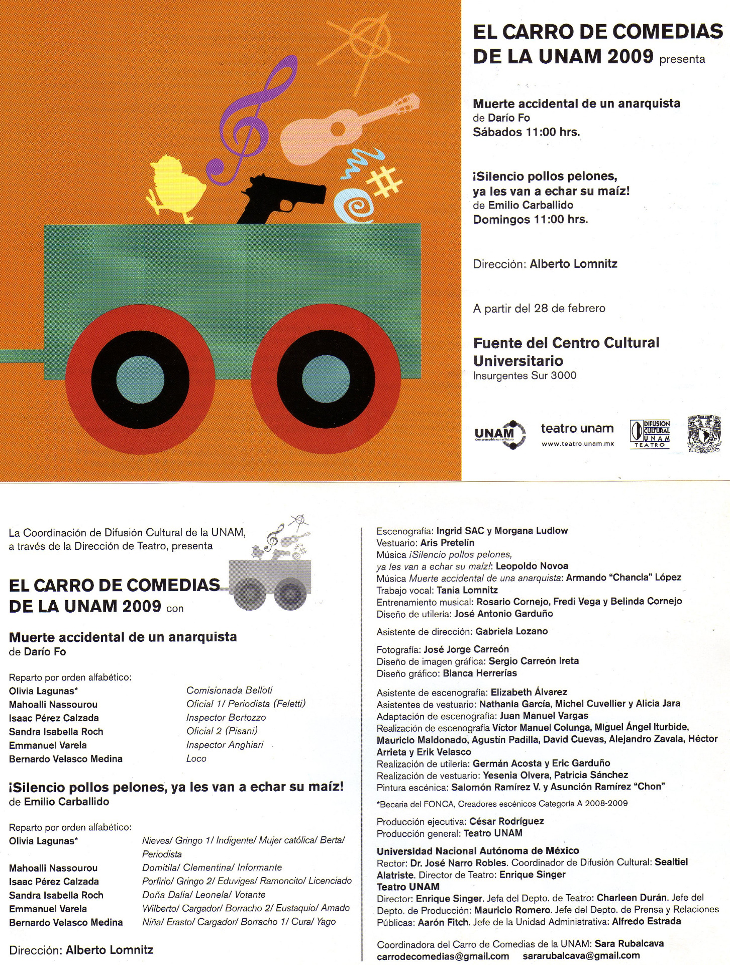 MUERTE ACCIDENTAL DE UN ANARQUISTA de Darío Fo. Dir. Alberto Lomnitz. Carro de Comedias UNAM.