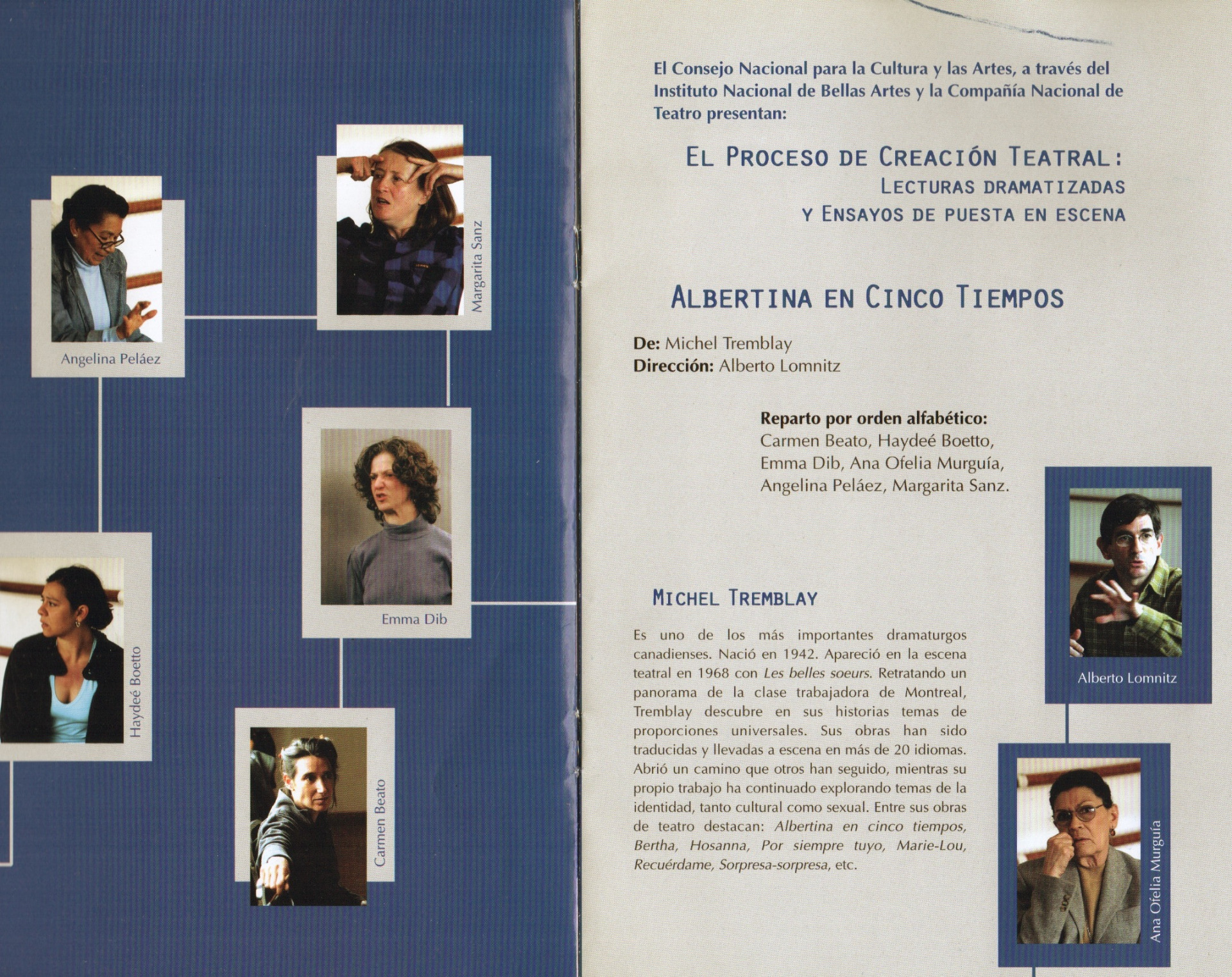 ALBERTINA EN CINCO TIEMPOS, de Michel Tremblay. Dir. Alberto Lomnitz. Teatro Julio Castillo, INBA. 2004